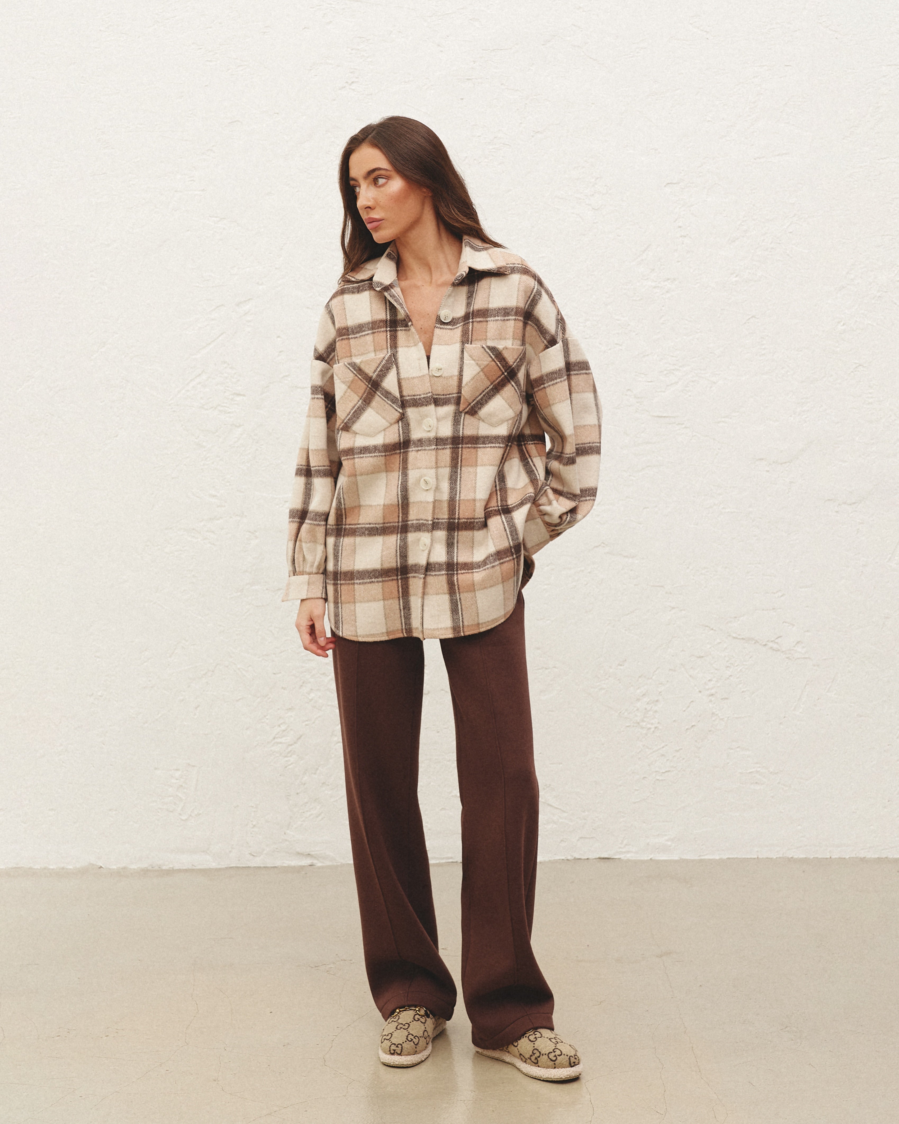 Класичний клітинковий принт додає образу невимушеного шарму, а вільний крій дозволяє носити її як окремо, так і в багатошарових луках — замість легкої куртки або поверх футболки.