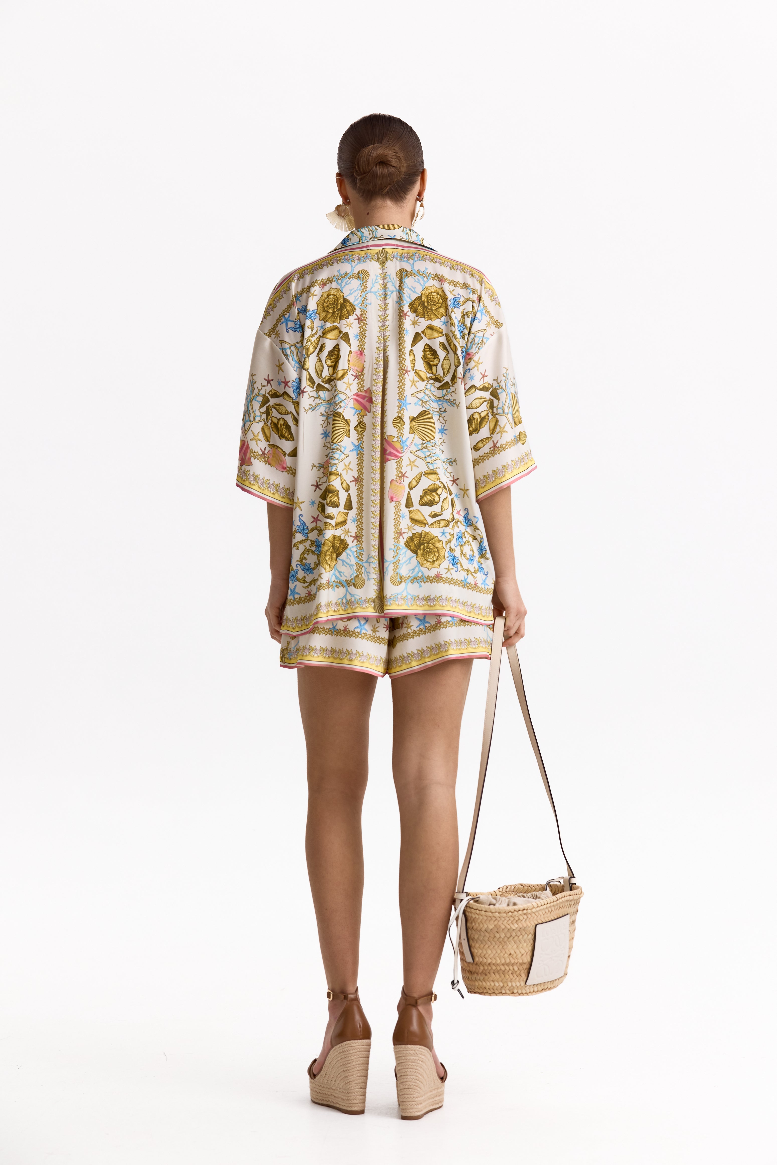 М’яка, гладка тканина з шовковистим ефектом приємна до тіла та ідеально підходить для спекотної погоди. Делікатний принт у світлих пастельних відтінках із витонченими орнаментами додає образу свіжості, курортного шарму та легкої розкоші.