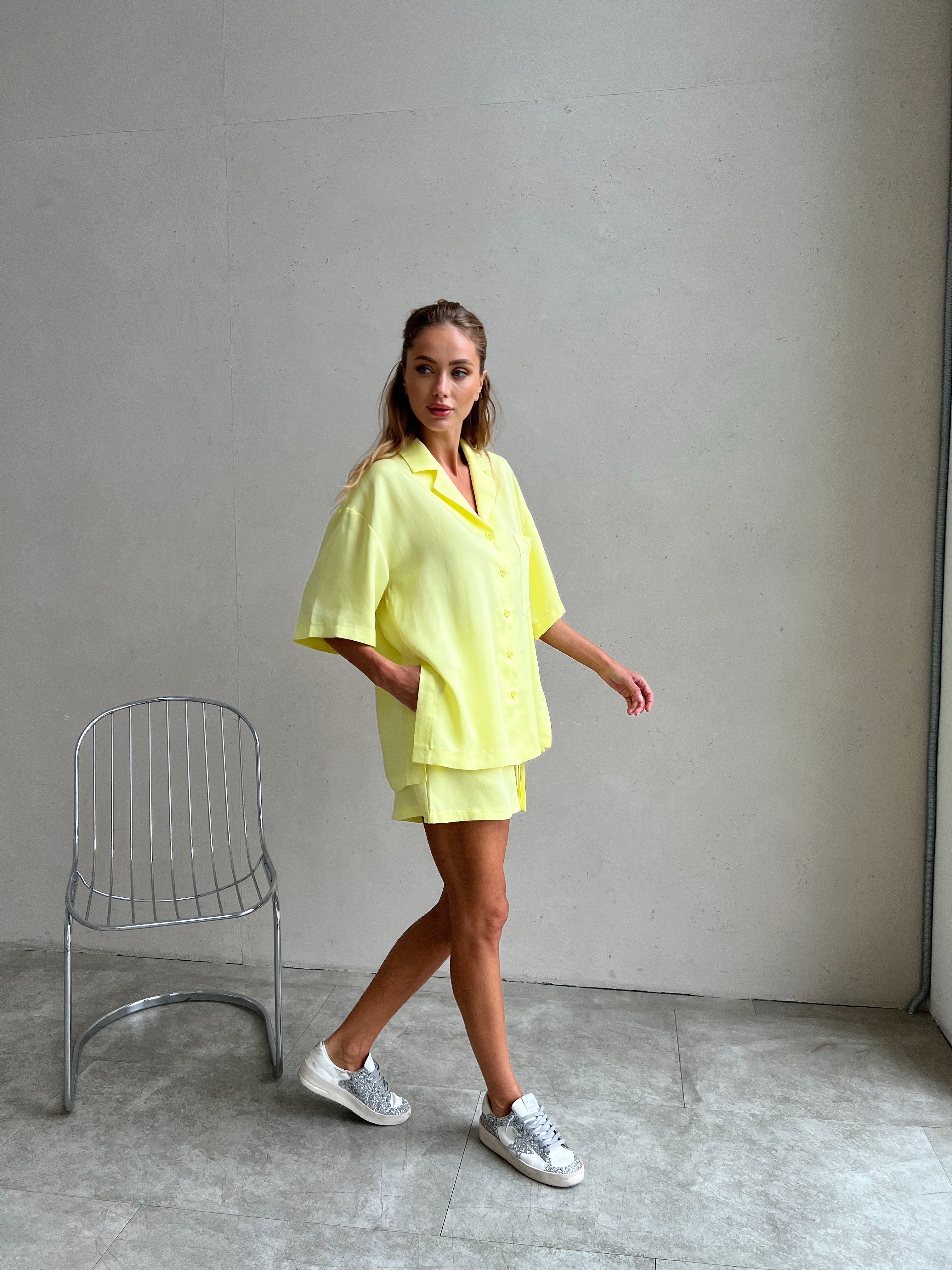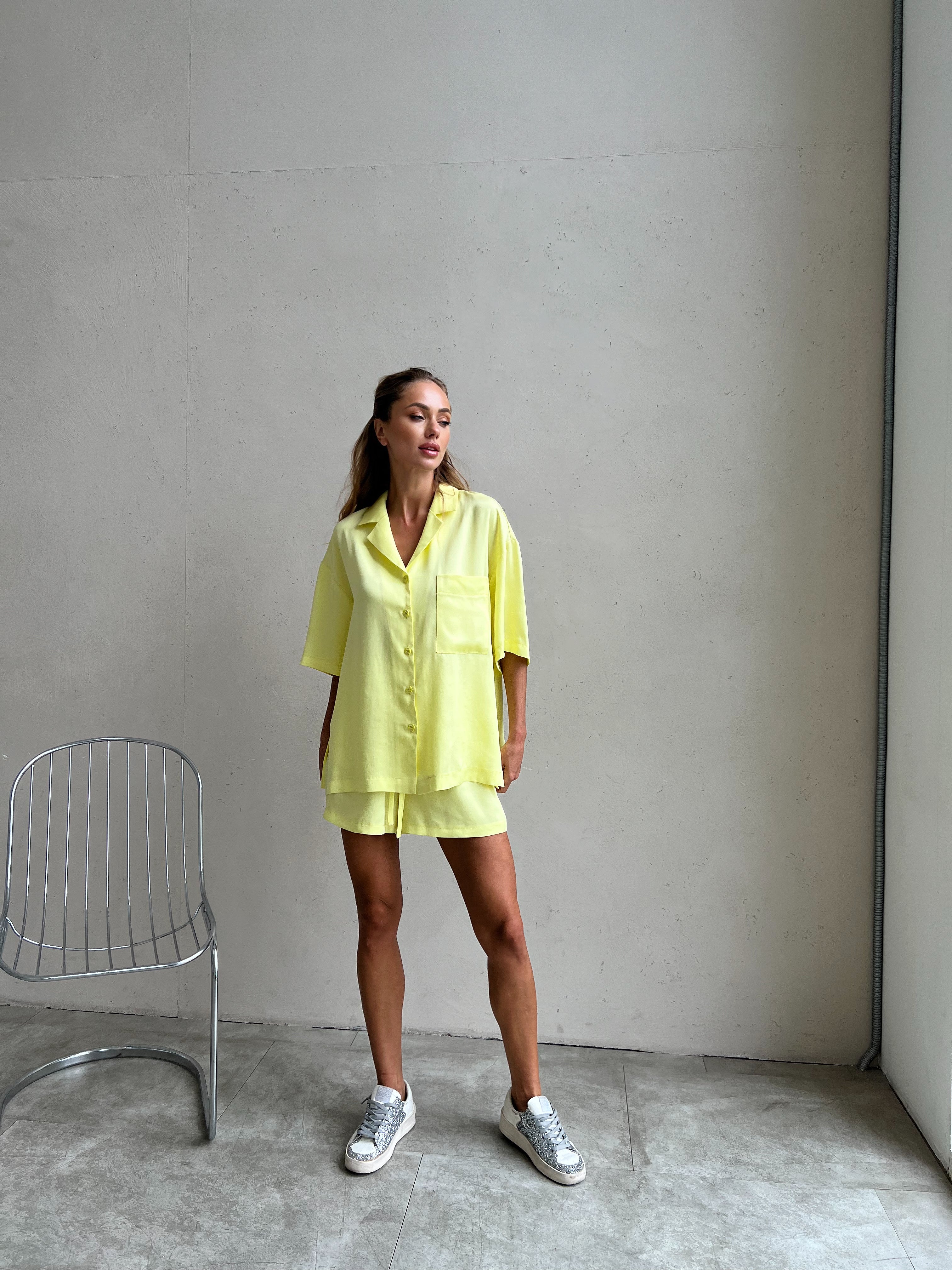 Живий жовтий відтінок додає настрою та робить образ яскравим, але водночас витонченим. Ідеально підходить як для міських прогулянок, так і для відпочинку біля моря. Легкий силует, комфортна посадка та натуральна тканина — все, що потрібно для ідеального літа.